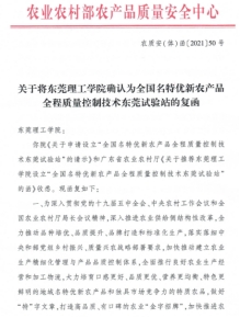 确认为“全国名特优新农产品全程质量控制技术东莞试验站”(统一编号CAQS-GAP-SYZ041)。该试验站依托我校91麻豆