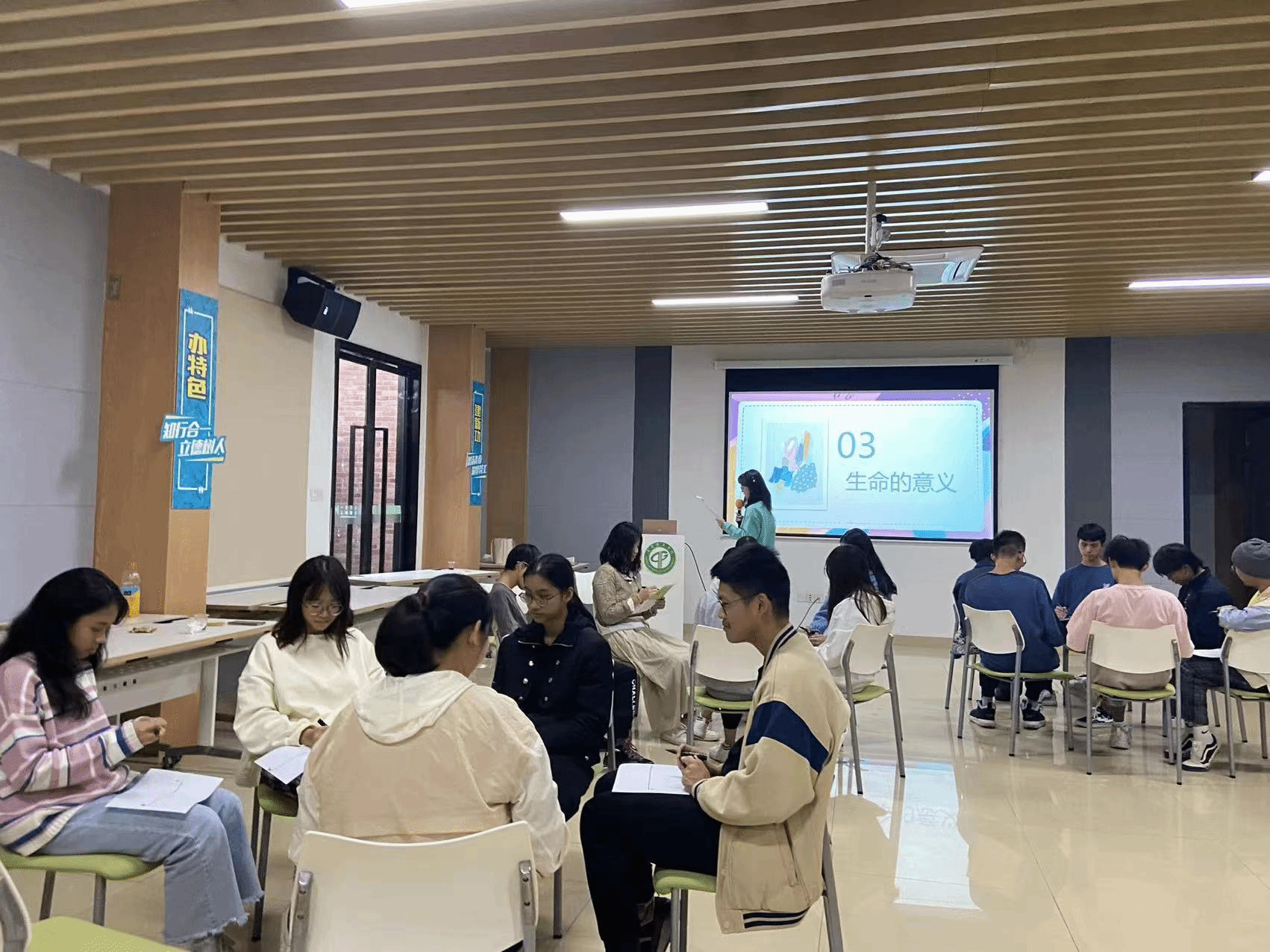 21级食品质量与安全1班的同学于2021年12月8日在学生活动中心A110室开展心理主题班会活动。在活动期间,同学们都积极配合,氛围融洽,在小组长的带领下同学们认真思考,乐于分享,善于倾听,使本次心理班会取得巨大成功。最后是集体朗诵,给予同学们鼓励和前进的动力,使本次班会的主题得到升华。