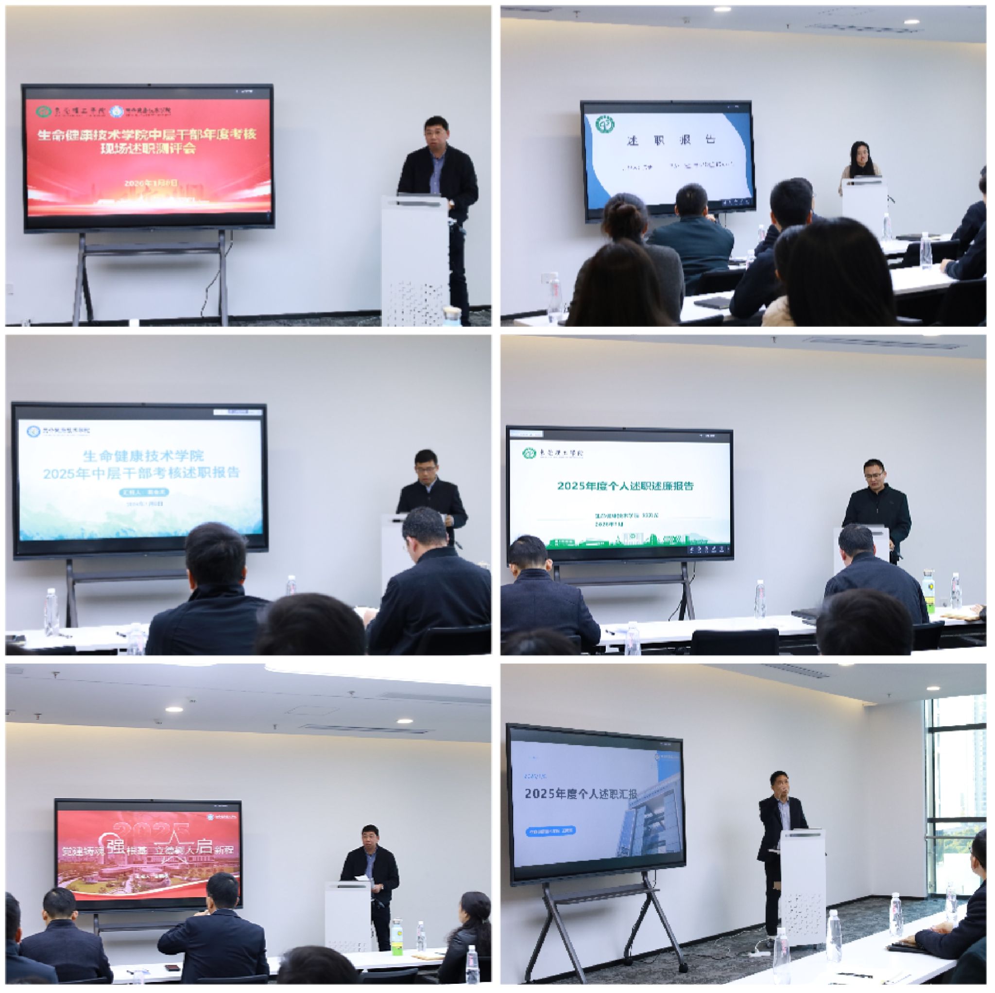 在述职评议会议上,学院中层干部紧扣学院发展大局和个人分管工作,依次围绕 2025 年度工作实绩展开汇报,全面介绍了深化学院内涵建设、推进教育教学改革、抢抓行业发展机遇、强化科研创新突破等方面的具体举措与成效。同时,深刻剖析了工作中存在的短板与不足,并结合学院发展规划明确了2026年度的工作思路、改进措施与攻坚方向。述职结束后,全院教职工、学生代表对中层干部履职情况进行评议。