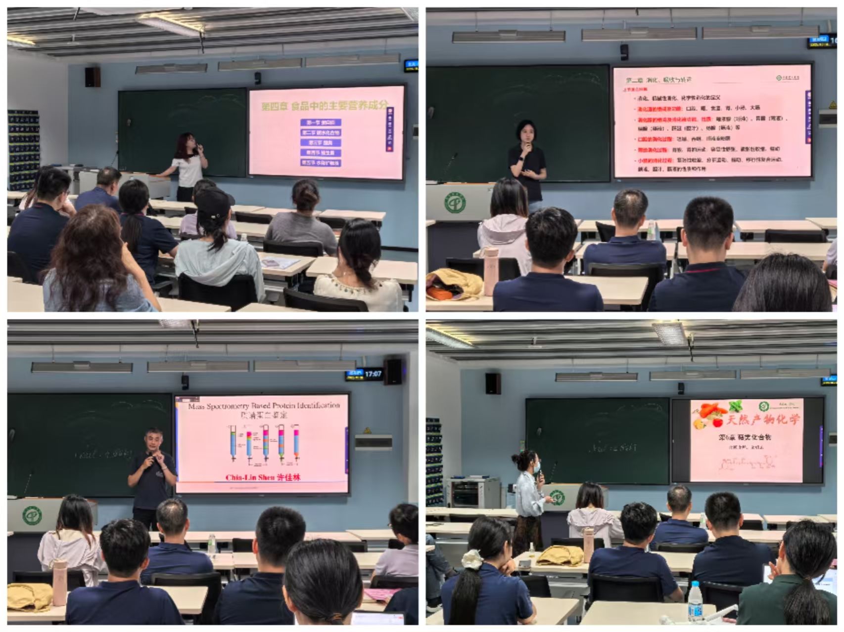 试讲环节中,熊舟翼、刘梦、许佳林和金明玉四位教师依次登台授课。熊舟翼老师聚焦食品营养话题,将复杂的专业概念转化为通俗易懂的生活常识,引导大家思考日常膳食摄入问题;刘梦老师则围绕能量摄入与消耗,通过设置层层递进的问题链,构建逻辑严谨的知识框架,帮助听众快速掌握重点内容;许佳林老师在授课时注重理论与实践的融合,详细讲解了相关实验操作步骤,强调操作规范与安全要点,展现出较强的实践教学能力;金明玉老师在课堂中充分关注“学生视角”,主动拉近与台下听众的距离,有效调动了现场的参与积极性。四位老师凭借扎实的专业知识储备与精心的课前准备,呈现了四节风格各异却同样精彩的教学课堂。