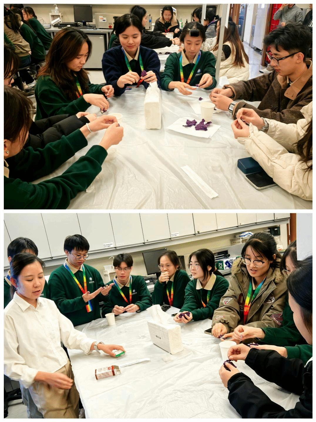 午后,学院师生实地参观了理大的教学科研设施,深入感受其学术氛围与校园文化。同学们纷纷表示,此次参访活动有助于拓宽视野、激发科学探究热情,为未来学习和职业发展提供了有益启示。在食品工艺学实验环节,同学们系统参与从原料处理到成品加工的全流程操作,并与理大学子共同开展了感官评价及集体研讨活动,通过校际学术交流与思想碰撞,切实提升了食品科学创新思维与实践能力。