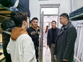 3月3日晚,学院党委书记谢炯标、党委副书记葛金虎、辅导员及班主任一行深入学生宿舍,了解学生的返校情况,并对宿舍安全、卫生等情况进行检查。走访过程中,老师们亲切问候返校同学,对同学们的假期生活及返校适应情况表示关心,同时,就同学们的学业进展、未来规划做了深入交流,了解大家的学习生活和思想动态,鼓励大家养成良好的学习习惯,助力自身发展,并对同学们提出的关于学习、生活和校园安全管理等各方面的问题一一进行解答。谢炯标强调,同学们应加强自我管理,严格遵守学校各项规章制度,不断提高校园安全意识,养成健康文明、积极向上的生活习惯,充分利用在校课余时间开展各类有益身心健康的科研、文体活动,让大学生活变得丰富多彩。