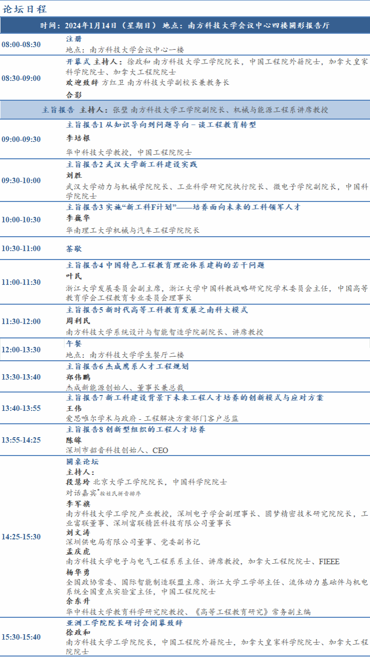 为了共同探索工程教育的新路径和分享教育经验,南方科技大学、新加坡工程院、浙江大学中国科教战略研究院以及国际工程教育中心(ICEE)于2024年1月14日联合举办亚洲工学院院长研讨会。本次研讨会作为全球工学院院长(GEDC, Global Engineering Deans Council)工业论坛的序幕活动,邀请了在工程教育领域享有盛誉、见解独到的知名学者以及关心工程教育发展的企业界高管,重点围绕AI 背景下的工程教育发表主题演讲并进行深入讨论,旨在构建一个针对亚洲区域工程教育发展的合作与交流平台,促进区域内工程教育的共同进步与创新。