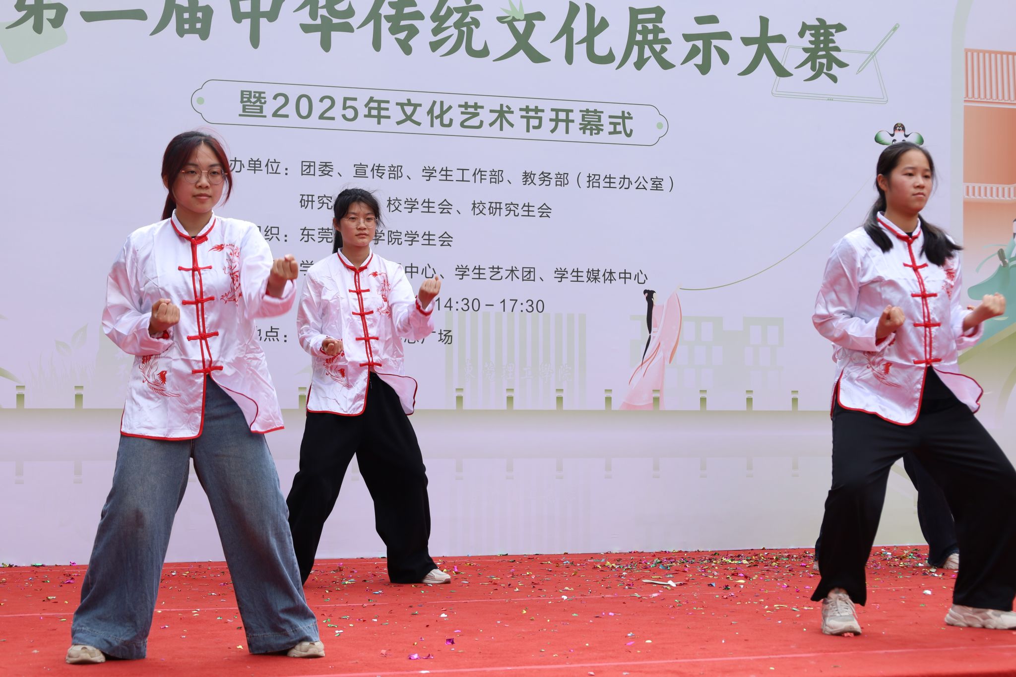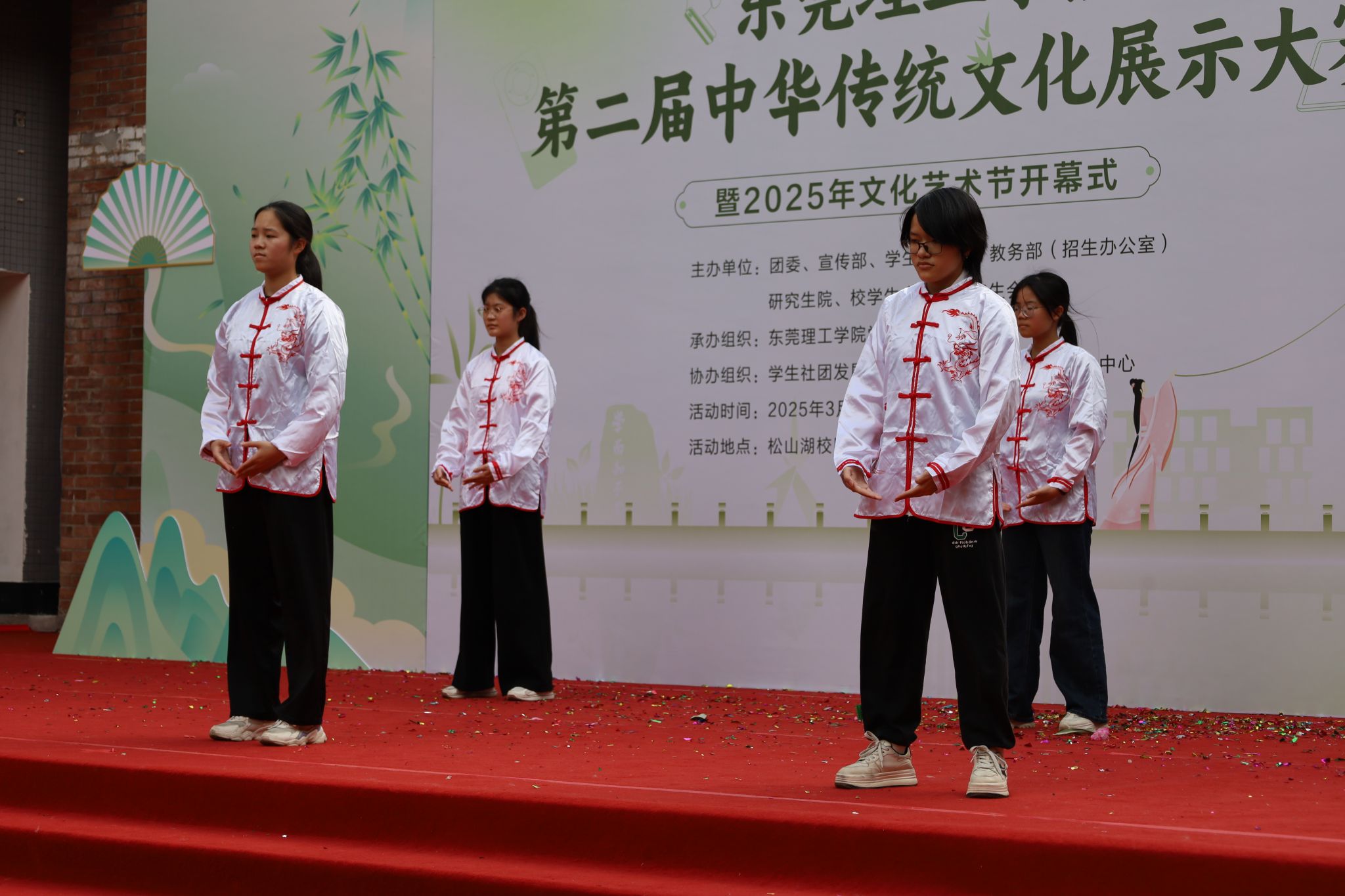在中华传统文化展示环节,学院将节目与八段锦表演相结合,完美展示了中华传统文化的动态美。表演现场,解说员对八段锦的文化内涵和健身价值进行了详细解说,表演人员通过流畅的动作展示,让观众深刻领略到了八段锦“调身、调息、调心”的精髓,充分感受到了传统文化的魅力。